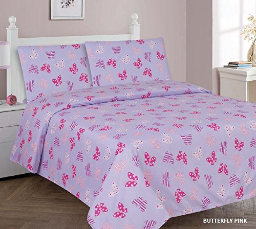 (Elegant Home)/Bedding Bath/Bedding/DIRECT FROM USA/Elegant Home Butterflies Multicolor Pink Purple 3 Piece Printed Twin Size Sheet Set with Pillow...