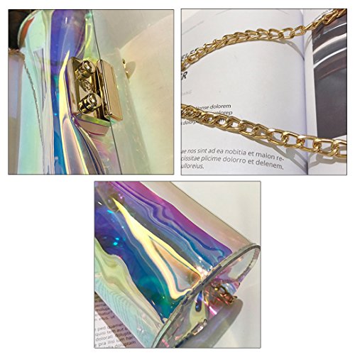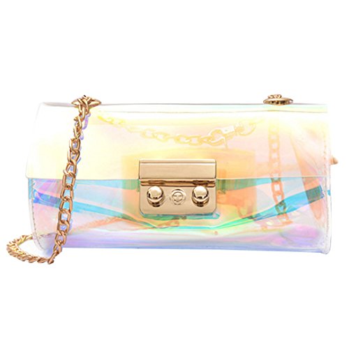 ORFILA WOMEN'S HOLOGRAM TRANSPARENT CHAIN CROSS BODY BAG CLUTCH FASHION LASER BARREL SHOULDER BAG PURSE SMALL BUCKET TOTE HANDBAG