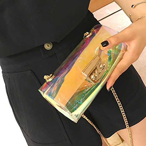 Amazing Cute Holographic/Iridescent Purse made of transparent PVC, gold tone hardware; Durable and Waterproof