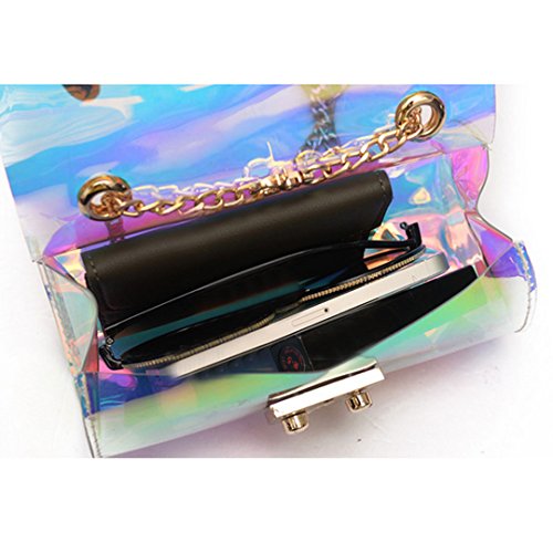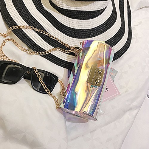 Women mini transparent hologram barrel bag is made of laser synthetic leather, simple yet chic. Featured with hologram laser design, bling bling under sunlight, makes you the fashion focus. Its color will vary with light change, trendy and unique. Classic and eye-catching, this small tote bag is personalized and stylish, easy to match any clothing, fits for any occasions, is the classic accessory for girls, ladies. Small size but big capacity, roomy enough to meet your needs, can hold wallet, cellphone, lipstick, sunglasses, cosmetics and other small items. It comes up with a chain strap and push lock closure, can be used as a clutch,handbag, shoulder bag or crossbody bag, the best gift for family and friends. If you have any problems, please email to us and we will try our best to meet your satisfaction!