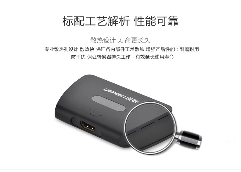 lvPlug: Gold-plated excuseShell: ABS engineering materialsChip: high-performance digital conversion chip