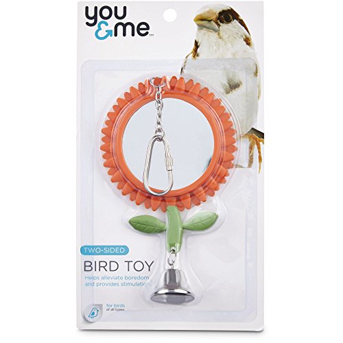 Product Description The You Me Two-Sided Flower Mirror Bird gives your pet mental and visual stimulation. It also clips on so you can add a whimsical and playful element to their habitat with ease. 0