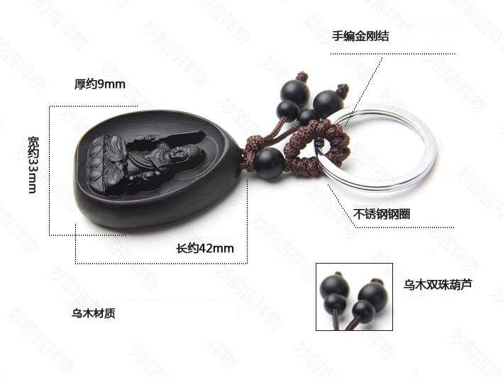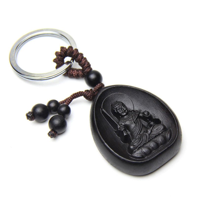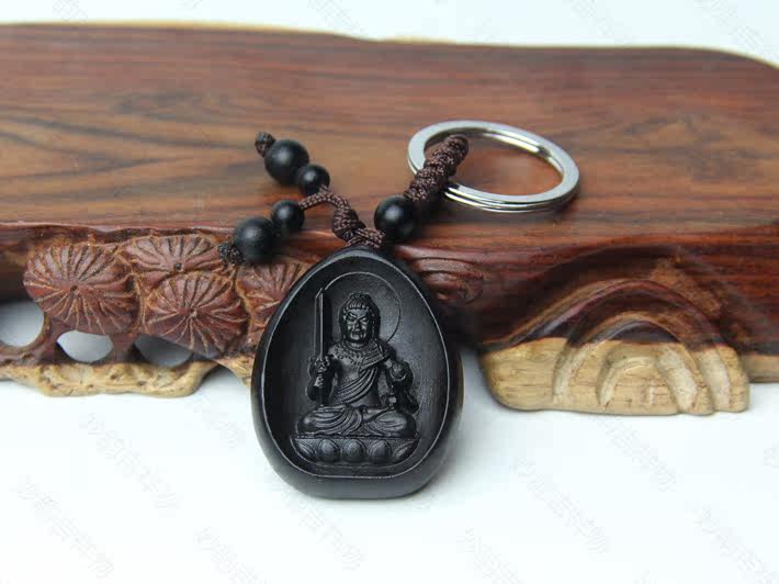 开光不动尊菩萨乌木钥匙扣 生肖鸡本命佛守护神吊坠
