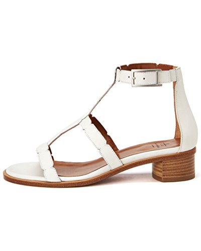 Product DescriptionSmooth leather scalloped gladiator sandal with leather stacked block heel.0