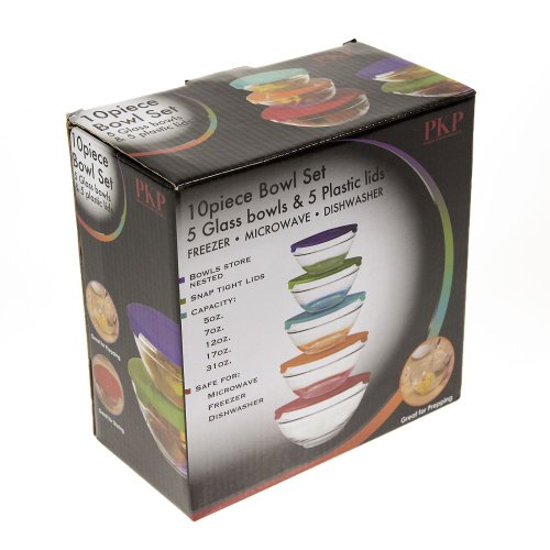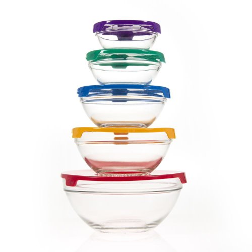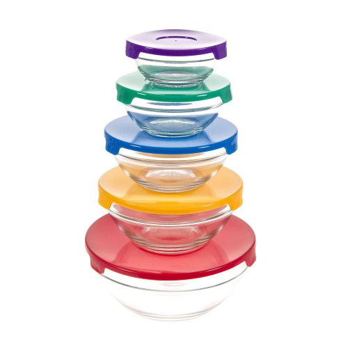 10 Piece Glass Bowl Set with Lids (Microwave, freezer and dishwasher safe)