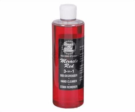 Studio : Rock N Roll Publisher : Rock N Roll Binding : Misc. Product Description Red is sweet. Red is dangerous. The Rock n' Roll Miracle Red degreaser is an all-natural liquid soap that can be applied at full-strength or diluted. The liquid concentrate comes with squeeze top, good for getting small quantities into rags before wiping down greasy parts. Put it on in concentrated form when there's lots of grease and grit to work with. Dilute one part with 4-5 parts of water and put it in a spray bottle for less formidable cleanings. At this dilution, it sill works as an excellent degreaser and goes much further. Can even take oil stains out of clothes. Red is on the job.