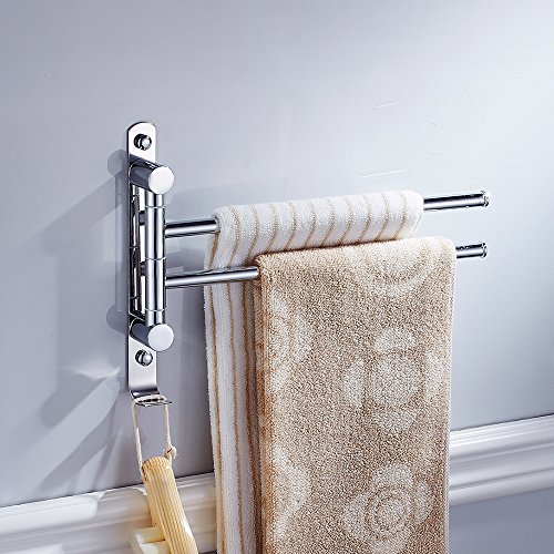 Velimax SUS 304 Stainless Steel Swivel Bars Bathroom Swing Out Towel Bars Hangers Storage Chrome Finish Folding Arm Wall Mounted (2-Arm)
