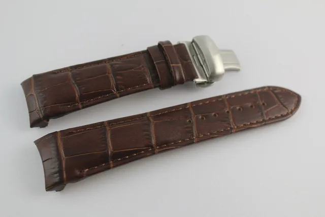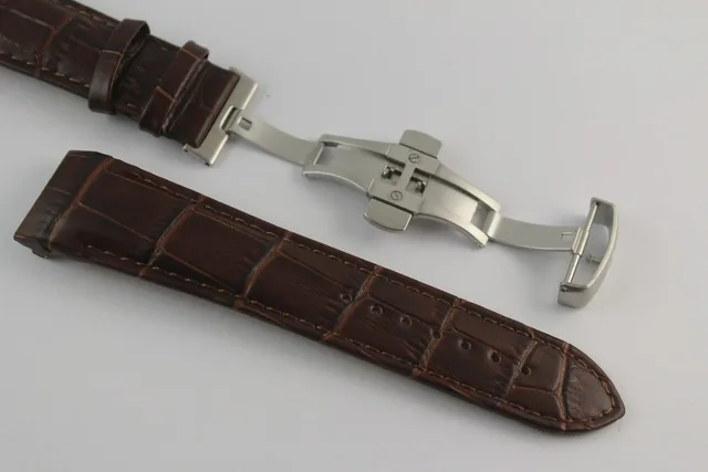 | [해외] 23 미리메터 (버클 20 미리메터) T035617A T035439 높은 품질 실버 나비 버클 + 브라운 정품 가죽 곡선 엔드 손목 T035 |