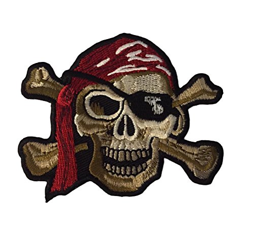 Product Description Skull Head With Crossbones Eyepatch Red Bandana Patch Patch measures 3 inches wide by 2 1/2 inches tall Patch can be ironed, sewn or glued on. 0