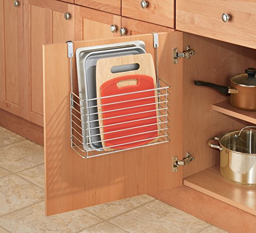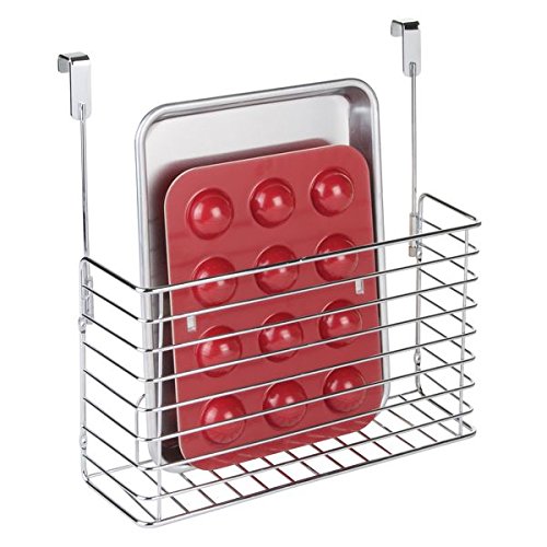 mDesign Over-the-Cabinet Adjustable Bakeware Wire Basket for Cutting Boards, Cookie Sheets, Muffin Pans and More – Chrome