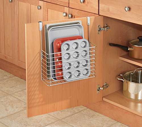 STORAGE MADE EASY: This hanging organizer basket offers convenient storage space for your essential bakeware items. No tools are needed for mounting, simply place the hooks over any cabinet door for easy access.