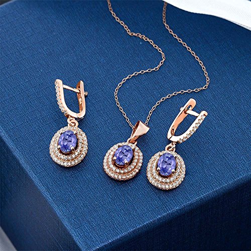 -. Title : 3.88 Ct Blue Tanzanite 925 Rose Gold Plated Silver Pendant Earrings Set