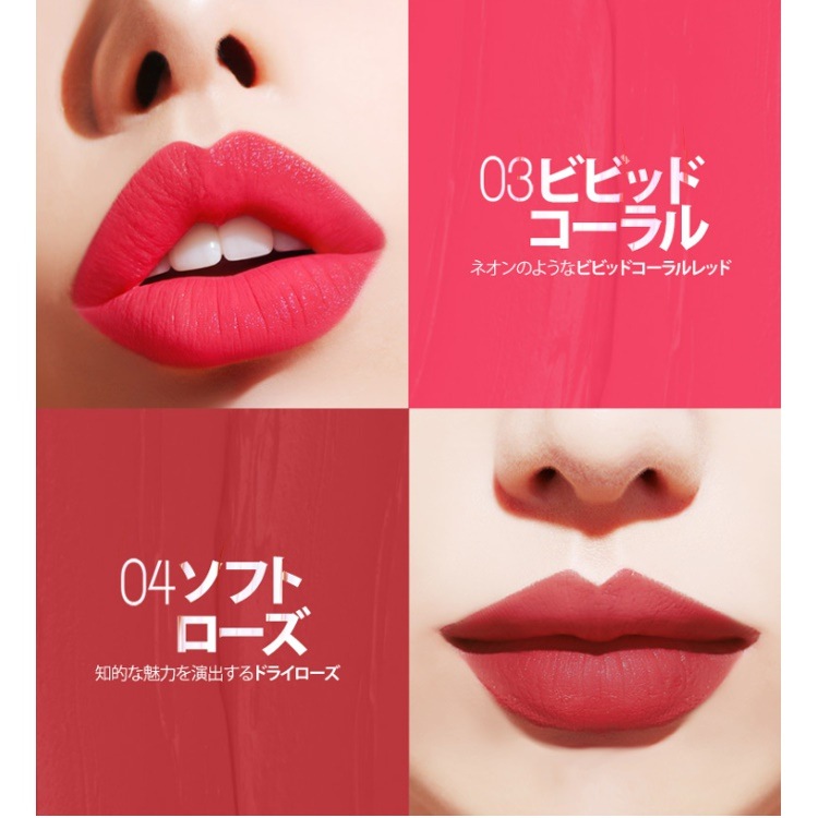 | 全成分 | #01 刺激の赤 パルミチン酸エチルヘキシル, ジ(カプリル/カプリン酸)BG, (ビニルジメチコン/メチコンシルセスキオキサン)クロスポリマー, (エチレン/アクリル酸)コポリマー, ポリエチレン, 赤色202号, リンゴ酸ジイソステアリル, (ジメチコン/ビニルジメチコン)クロスポリマー, (フサアカシアロウ/ホホバワックス/ヒマワリ種子ロウ)ポリグリセリル-3エステルズ, 赤色201号, ポリメチルシルセスキオキサン, ヒマワリ種子油, (エチレン/プロピレン)コポリマー, オゾケライト, トリイソステアリン酸ポリグリセリル-2, ジメチルシリル化シリカ, キャンデリラロウ, トリ(カプリル酸/カプリン酸/ミリスチン酸/ステアリン酸)グリセリル, 黄色5号, 黄色4号, 酢酸トコフェロール, BHT, 香料, 酸化鉄, グレープフルーツ果皮油, オレンジ油, オリーブ油, 水, 加水分解コラーゲン, 1,2-ヘキサンジオール, シルクアミノ酸, フェノキシエタノール, ダイウイキョウ果実エキス, エチルヘキシルグリセリン, カプリリルグリコール, シア脂, BG #02 肯定の赤 パルミチン酸エチルヘキシル, ジ(カプリル/カプリン酸)BG, (ビニルジメチコン/メチコンシルセスキオキサン)クロスポリマー, (エチレン/アクリル酸)コポリマー, ポリエチレン, リンゴ酸ジイソステアリル, 赤色104-(1)号, (ジメチコン/ビニルジメチコン)クロスポリマー, (フサアカシアロウ/ホホバワックス/ヒマワリ種子ロウ)ポリグリセリル-3エステルズ, 黄色5号, ポリメチルシルセスキオキサン, ヒマワリ種子油, (エチレン/プロピレン)コポリマー, オゾケライト, 酸化チタン, トリイソステアリン酸ポリグリセリル-2, ジメチルシリル化シリカ, キャンデリラロウ, トリ(カプリル酸/カプリン酸/ミリスチン酸/ステアリン酸)グリセリル, 赤色202号, 酢酸トコフェロール, BHT, 香料, グレープフルーツ果皮油, オレンジ油, オリーブ油, 加水分解コラーゲン, 水, 1,2-ヘキサンジオール, カプリリルグリコール, ダイウイキョウ果実エキス, BG, フェノキシエタノール, エチルヘキシルグリセリン, シルクアミノ酸, シア脂 #03 魅惑の赤 パルミチン酸エチルヘキシル, ジ(カプリル/カプリン酸)BG, (ビニルジメチコン/メチコンシルセスキオキサン)クロスポリマー, (エチレン/アクリル酸)コポリマー, ポリエチレン, リンゴ酸ジイソステアリル, (ジメチコン/ビニルジメチコン)クロスポリマー, 赤色202号, (フサアカシアロウ/ホホバワックス/ヒマワリ種子ロウ)ポリグリセリル-3エステルズ, 酸化チタン, ポリメチルシルセスキオキサン, ヒマワリ種子油, (エチレン/プロピレン)コポリマー, オゾケライト, トリイソステアリン酸ポリグリセリル-2, 黄色4号, ジメチルシリル化シリカ, キャンデリラロウ, トリ(カプリル酸/カプリン酸/ミリスチン酸/ステアリン酸)グリセリル, 赤色104-(1)号, 黄色5号, 酢酸トコフェロール, BHT, 香料, グレープフルーツ果皮油, オレンジ油, オリーブ油, 加水分解コラーゲン, 水, 1,2-ヘキサンジオール, カプリリルグリコール, ダイウイキョウ果実エキス, BG, フェノキシエタノール, エチルヘキシルグリセリン, シルクアミノ酸, シア脂 #04 知的の赤 パルミチン酸エチルヘキシル, ジ(カプリル/カプリン酸)BG, (ビニルジメチコン/メチコンシルセスキオキサン)クロスポリマー, (エチレン/アクリル酸)コポリマー, ポリエチレン, リンゴ酸ジイソステアリル, (ジメチコン/ビニルジメチコン)クロスポリマー, (フサアカシアロウ/ホホバワックス/ヒマワリ種子ロウ)ポリグリセリル-3エステルズ, 酸化チタン, ポリメチルシルセスキオキサン, ヒマワリ種子油, (エチレン/プロピレン)コポリマー, オゾケライト, トリイソステアリン酸ポリグリセリル-2, 黄色4号, ジメチルシリル化シリカ, キャンデリラロウ, トリ(カプリル酸/カプリン酸/ミリスチン酸/ステアリン酸)グリセリル, グンジョウ, 赤色202号, 酢酸トコフェロール, BHT, 香料, グレープフルーツ果皮油, オレンジ油, オリーブ油, 加水分解コラーゲン, 水, 1,2-ヘキサンジオール, カプリリルグリコール, ダイウイキョウ果実エキス, BG, フェノキシエタノール, エチルヘキシルグリセリン, シルクアミノ酸, シア脂 #05 強的の赤 パルミチン酸エチルヘキシル, ジ(カプリル/カプリン酸)BG, (ビニルジメチコン/メチコンシルセスキオキサン)クロスポリマー, (エチレン/アクリル酸)コポリマー, ポリエチレン, 赤色202号, リンゴ酸ジイソステアリル, (ジメチコン/ビニルジメチコン)クロスポリマー, (フサアカシアロウ/ホホバワックス/ヒマワリ種子ロウ)ポリグリセリル-3エステルズ, 酸化チタン, 黄色4号, ポリメチルシルセスキオキサン, ヒマワリ種子油, (エチレン/プロピレン)コポリマー, オゾケライト, 酸化鉄, トリイソステアリン酸ポリグリセリル-2, ジメチルシリル化シリカ, キャンデリラロウ, トリ(カプリル酸/カプリン酸/ミリスチン酸/ステアリン酸)グリセリル, 酸化チタン, 酢酸トコフェロール, BHT, 香料, グレープフルーツ果皮油, オレンジ油, オリーブ油, 加水分解コラーゲン, 水, 1,2-ヘキサンジオール, カプリリルグ