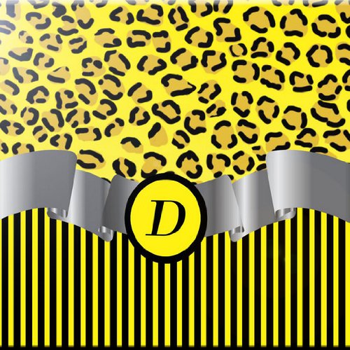 Rikki Knight RK-12intilec-2284 12" X 12" Letter "D" Yellow Leopard Print Stripes Monogram Design Ceramic Art Tile