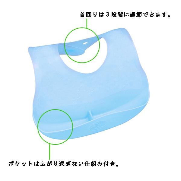 | シリコン製のソフトで肌にやさしいビブ。 |