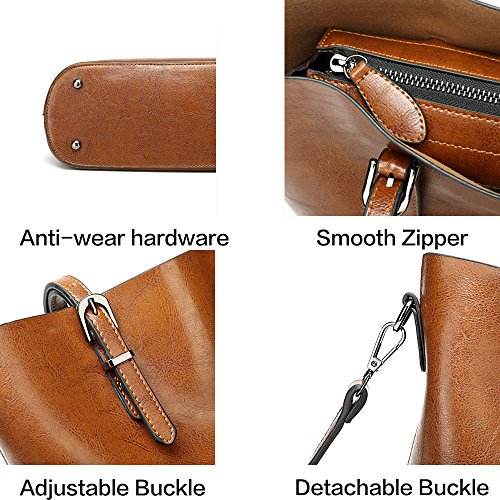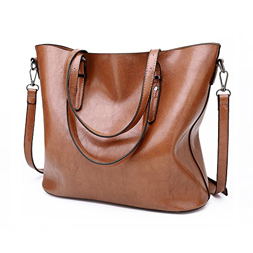VECHOO Women's Handbags Oil Wax Leather Tote Large Capacity Shopping Bags Top-Handle Bags Fashion Shoulder Bags Ladies Cross-Body Bags(Brown)