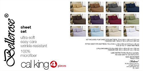 -. Brand : Bellerose -. Feature : SUPER SOFT - Our bedding sheets are buttery soft and very light weight, feels like heaven. Bring sophistication to your bedroom. / ACCURATE THREAD COUNT - The quality and texture of our bed set is perfect. Hypoallergenic and resistant to dust mites. Durable and attractive. / MADE WITH QUALITY MICROFIBER - Double Brushed microfiber is constructed to help with temperature control, it breathes 50% better than cotton sheets and is will not pills. / KING 4 PIECE SET - 1 flat sheet (102"x105"), 1 fitted sheet (78"x80"), and 2 King pillowcases (20"x40"). Our set comes with deep pocket fitted sheet. Fits mattresses up to 16 inches. Made with elastic all around the fitted sheet to secure your bottom sheet. / HESITANT BECAUSE OF THE LOW P.R.ICE? We at Bellerose offer a 100% Money Back Guarantee. Satisfaction or 100% of your money back. No questions asked! -. Label : Bellerose -. Manufacturer : Bellerose -. ProductGroup : Home -. ProductTypeName : HOME_BED_AND_BATH -. Publisher : Bellerose -. Studio : Bellerose -. Title : Luxurious Sheets Set 1800 3-Line Collection Brushed Microfiber Deep Pocket - High Quality Super Soft and Comfortable Hotel Collection Sheets by Bellerose