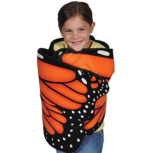 Let your imagination soar and get bugged out for dress up time with these gorgeous Monarch Butterfly Plush Costume Wings by 'Adventure Planet'! Creative playtime can be a great way to teach your kids about the natural world. The fun is all up to you! Wings measure approximately 44 inches across, and each wing has two soft elastic bands to pull arms through so your little one can flap about and not miss a beat! These plush wings feature another surprise - a plush butterfly body on the back so it doubles as a stuffed toy or wall hanging. One Size Fits Most. Great for play time or a fun costume. Ages 5 and Up!Feature