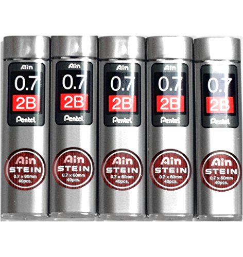 Pentel Ain Pencil Leads 0.7mm 2B, 40 Leads X 5 Pack/total 200 Leads (Japan Import) [Komainu-Dou Original Package]