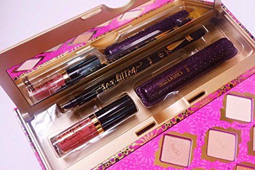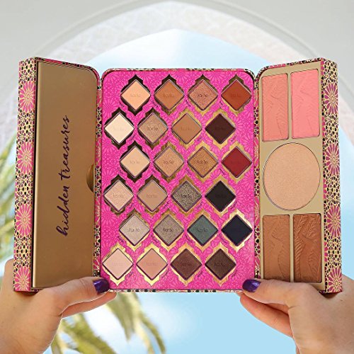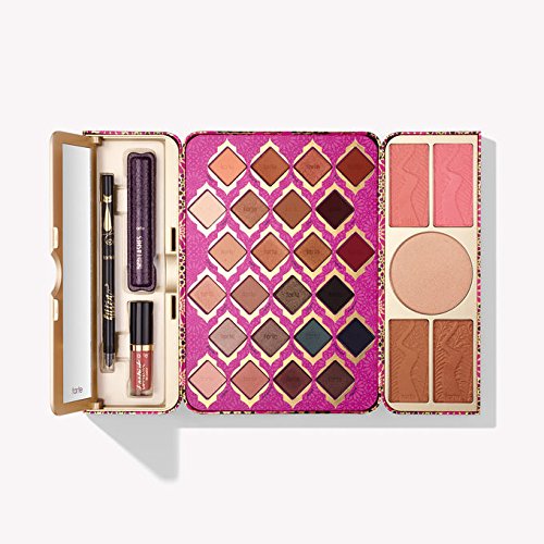 A gift set overflowing with Tarte treasures: eyeshadow, liner, mascara, cheek, lipstick formulas in all new shades. This set contains: - Amazonian Clay Eyeshadows (24 x 0.024 oz/ 0.7g) - Amazonian Clay Blushes in Perk (carnation pink) & Wish (watermelon pink) (2 x 0.1 oz/ 3g) - Amazonian Clay Bronzers in Navigate (matte bronze) & Excursion (bronze luster) (2 x 0.1 oz/ 3g) - Amazonian Clay Highlighter in Wanderlust (light champagne) (0.21 oz/ 6g) - Sex Kitten Eyeliner (0.007 oz/ 0.2g FULL SIZE) - Lights, Camera, Lashes 4-In-1 Mascara (0.13 oz/ 4ml TRAVEL SIZE) - Tarteist Quick Dry Matte Lip Paint in Grand (deep rose) (0.034 oz /1mL TRAVEL SIZE) This set gives a full face of glam with exotic packaging inspired by the Tarte team's travels. Inside, you'll find everything you need in one place-a 24-piece eyeshadow palette, warm- and cool-toned blushes, two universal bronzers, and a pearlescent highlighter with all new shades to love. Open the storage compartment to reveal a full-size Sex Kitten Eyeliner and travel-sizes of Tarte's iconic mascara and quick drying, Matte Liquid Lipstick.Feature