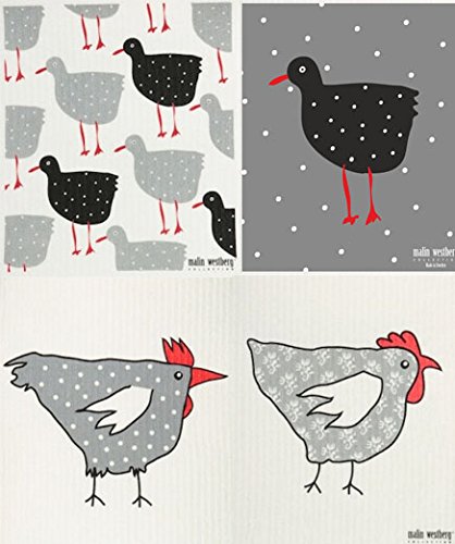 Swedish Dishcloth - Set of 4 (DB) Different Chickens & Hens Designs