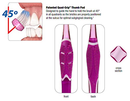 -. Feature : Colors Vary / No Slip Quad-Grip handle helps you brush at the proper 45 degree angle for optimal below-the-gumline cleaning / Compact Head / This Toothbrush's bristles are designed to penetrate deeply for a great clean / GUM 525
