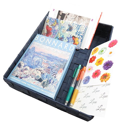 -. Feature : THE SPECIFICS: This letter tray measures 12.5" x 9.5" and is available in navy blue. Pens, paper and book are for demonstration purposes only and not included. / DURABILITY: The tray is excellently crafted with a woven material and a metal frame throughout. / AWESOME DESK ORGANIZER: This is perfect to use in your home or office to organize your pens, notebooks, letters, bills and any other items including your cell phones and tablets. It even fits well in some drawers, on a kitchen counter, or a bookshelf, keeping those essentials all in one place. / MULTI-PURPOSE: This functional item helps eliminate clutter in any room in your home, office, nursery, closet, bedroom, bathroom, pantry, or dorm room. / GREAT GIFT: Give this to students and teachers especially during back-to-school time.
