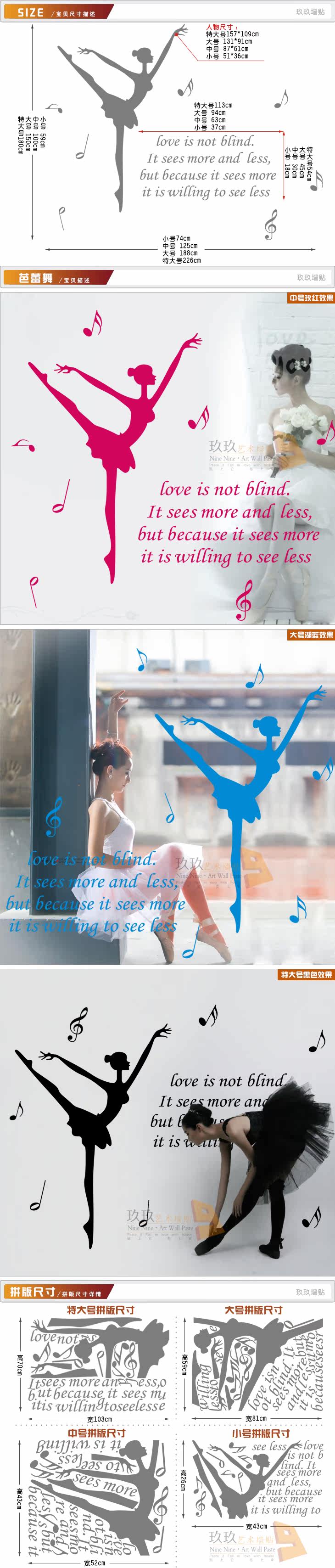 墙贴女孩女生卧室音乐舞蹈教室艺术学校练功房贴纸单人芭蕾舞