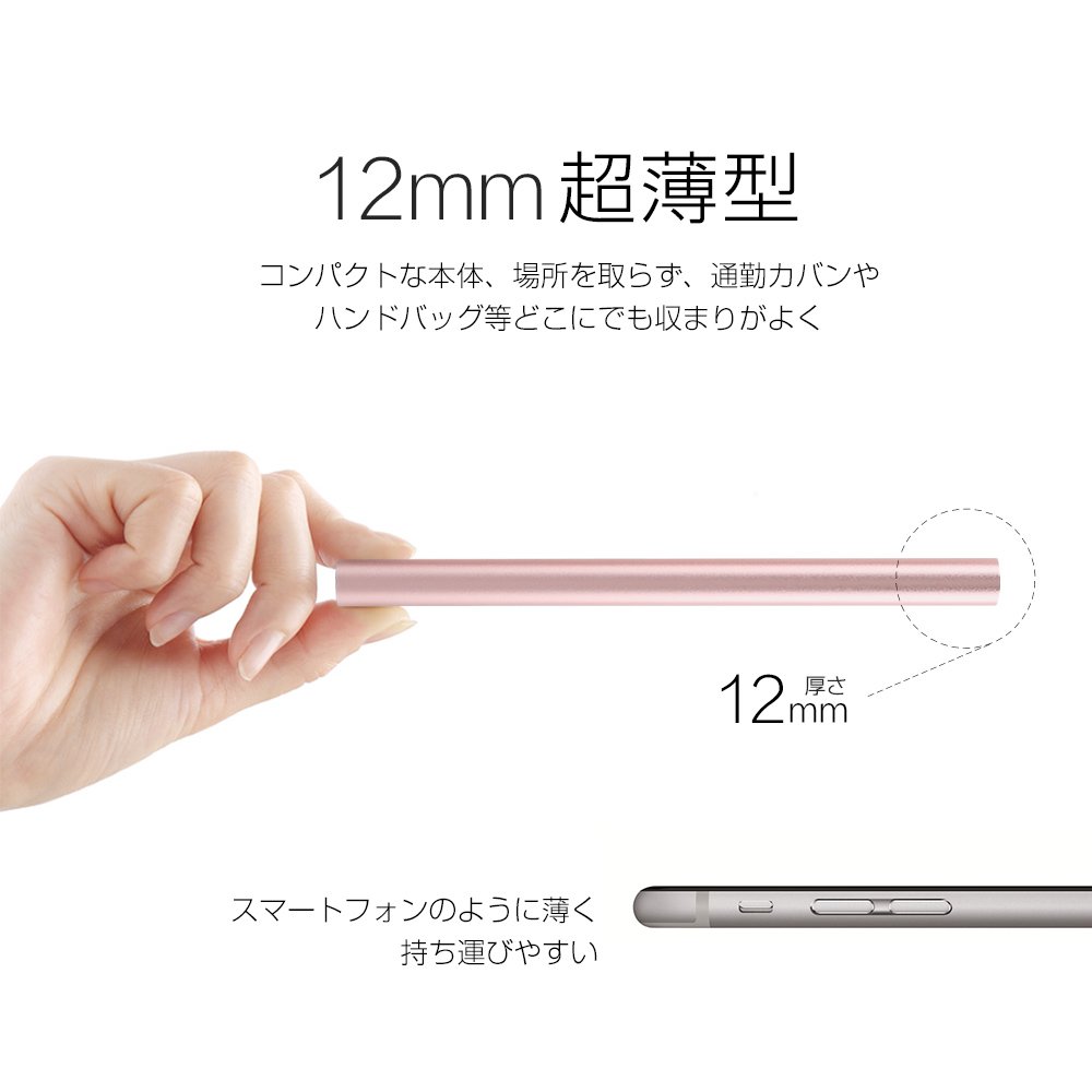 Compact body of 140 mm × 57 mm × 12 mm, take up space, commuter bags and handbags, etc. fits everywhere well, and it is convenient to carry.