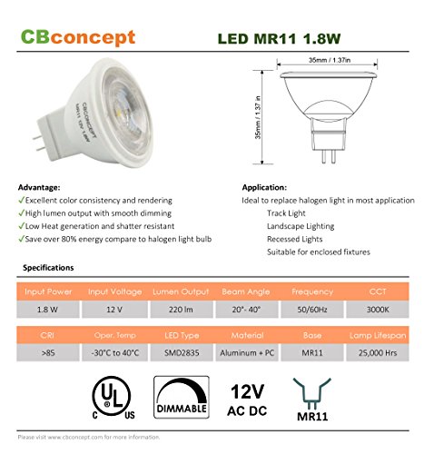 Easy Installation. Standard MR11 shape with GU4 base. Can be easily fitted instead of ordinary MR11 halogen bulbs