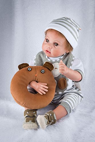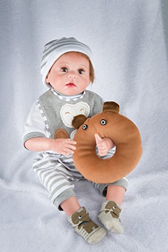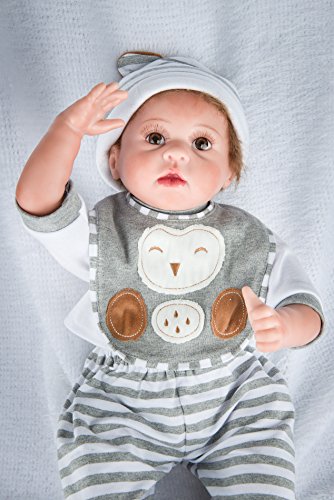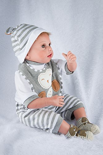 Reborn Baby BOYDoll Soft Silicone vinyl 22 inch or 55cm Lovely Lifelike Cute Baby Beautiful doll as a real newborn baby. With beautiful clothes, and the real size of a newborn baby 55 cm or 22 inch . Realistic reborn baby doll magnetic pacifier . Baby clothes saze 0-3 m Doll size 55 cm or 22 inch Gift box included For more questions about this product, please Contact Us