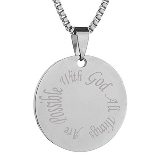 -. Title : Girl's Stainless Steel Jewelry Necklace With God All Things Are Possible Round Pendant Inspirational Gift