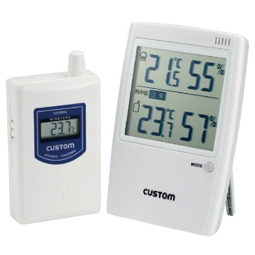 -. Title : カスタム (CUSTOM) 無線温湿度モニター(熱中症警告インジケーター付) 気温(親機/子機)/湿度(親機/子機)/熱中症指数レベル(親機/子機)表示対応 通信距離最大80m HI-01RF