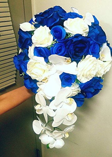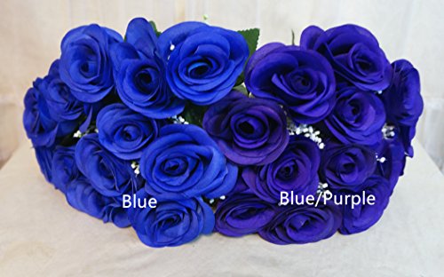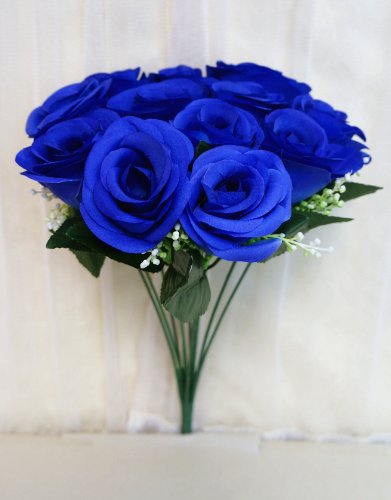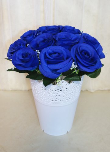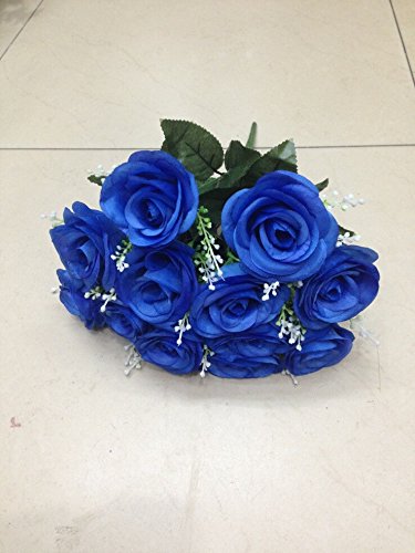 Sweet Home Deco 14'' One Dozen Sweet Roses Silk Artificial Bouquet Blue (12 Stem/12 Flower Heads)(valentine's Day/wedding/home Decorations) (Blue)