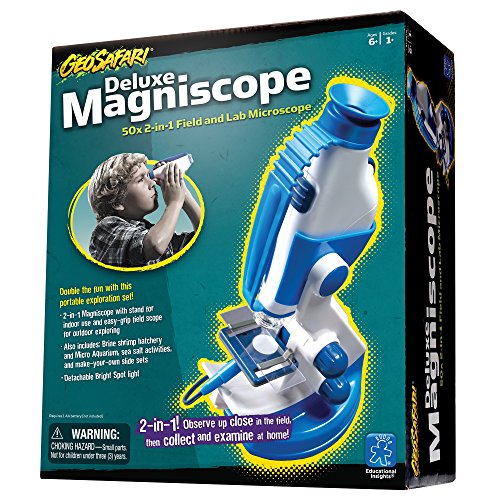 -. Feature : Combination home lab and 50x field microscope! Learn at home or use this portable scientific tool! / Detachable 50x MagniScope attaches to stable, removable base with equipment storage compartment / Includes dropper, brine shrimp eggs and hatchery, sea salt, plastic cover slips, activity guide, and more / 25-Page activity guide features activities perfect for STEM learning / Experts agree that 30-50x is the optimal power for children's microscopic exploration