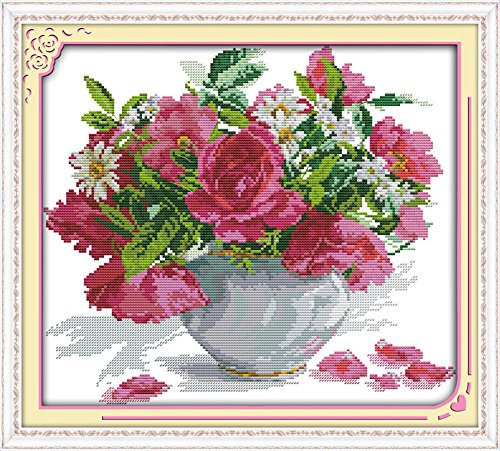 Benway Counted Cross Stitch Red Roses And Daisies In Vase 14 Count 39X36cm