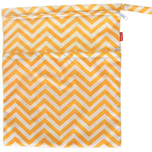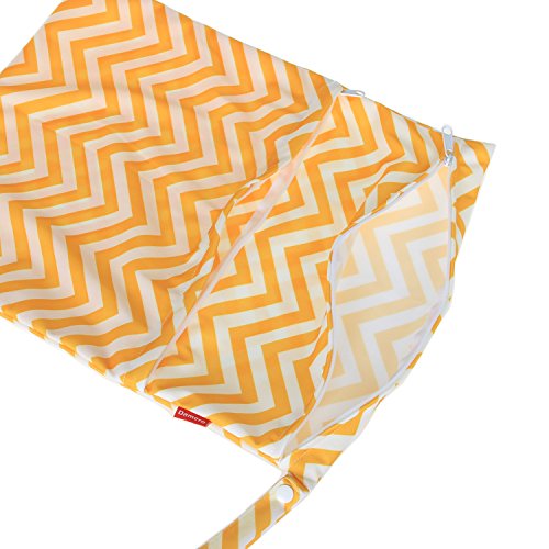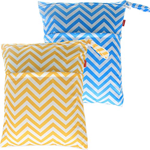 Damero 2pcs Pack Cute Travel Baby Wet and Dry Cloth Diaper Organizer Bag( Large, Yellow Chevron+Blue Chevron)