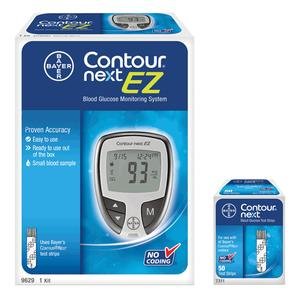 -. Feature : This Listing Is For Bayer Contour Next EZ Meter Kit / Qty : 1 Each / Dimension : 4-3/"4 L x 2-3/4" W x 6-9/16" H / Insert the test strip and test your blood glucose level it's that simple. / Fast, 5-second countdown with tiny sample size 6/10µL