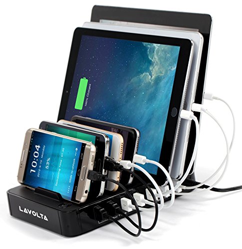 Lavolta Multiple Device Charging Station - 7-Port Multi-device USB Power Hub for Tablet Phone Apple iPad iPhone Samsung Galaxy Kindle Fire - Desktop & Mobile Devices Charger Organizer Docking Pad