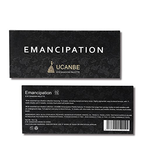 -. Binding : Misc. -. Brand : Inspired Capital L -. Feature : This is a pro 14 colors warm color matte shimmer eyeshadow which is great for everyday use and party us / This eyeshadow is very pigmented and very easy to apply which keep your perfect eyeshadow makeup for a long time / It comes with a makeup brush, 2 different collections for you to choose from / Health and safe ingredients and great quality / Fast Shipping-it usually takes 5-10 business days -. IsAdultProduct : 0 -. Label : UCANBE -. Manufacturer : UCANBE -. MPN : B1202 -. PackageQuantity : 1 -. PartNumber : B1202 -. ProductGroup : Beauty -. ProductTypeName : BEAUTY -. Publisher : UCANBE -. Studio : UCANBE -. Title : 14 Colors Classic Matte Shimmer Emancipation Warm Color Textured Eyeshadow Palette