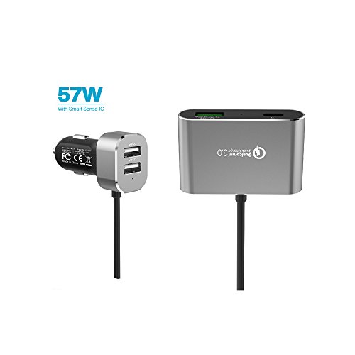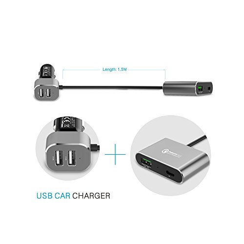 With 2 USB ports for the driver and font passenger and a 1 USB+1 TYPE C ports for the backseat passengers. Compatible with all USB powered devices including Quick Charge 2.0/1.0 & Apple phones & tablets.
