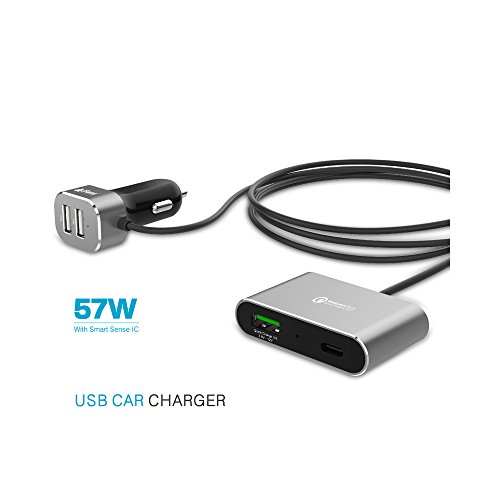Quick Charge 3.0 USB Type C Qualcomm Car Charger, 3-Port USB Port Adapter with 1 type-C port