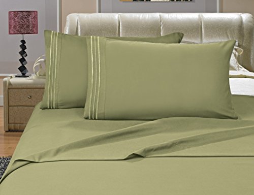 Elegance Linen ® Wrinkle-Resistant 1500 Thread Count QUEEN Size Silky Soft Luxurious 4pcs SHEET SET Deep Pocket Up to 16" - Green