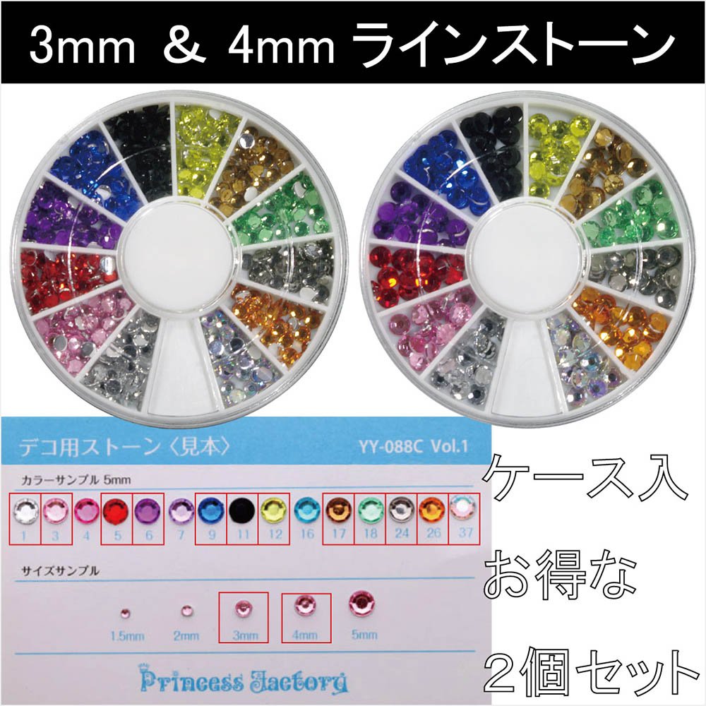 Color rhinestone nail round case for Deco input 12-color two / set 3mm & 4mm