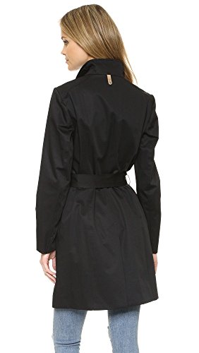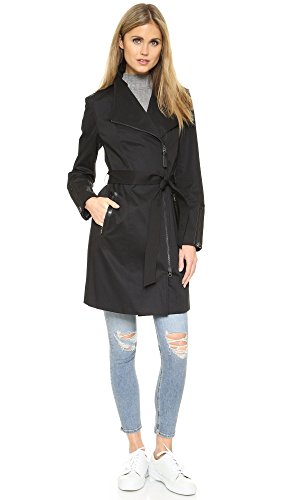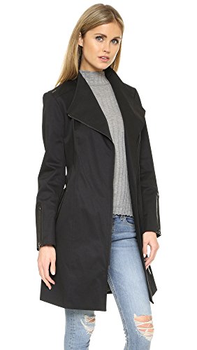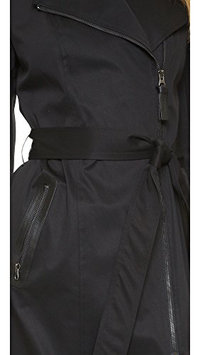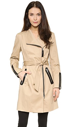 A tailored Mackage trench coat with modern structure. Winged lapels and off-center zip placket. Leather-trimmed zip front pockets and cuffs. Center back vent. Self-belt. Lined.