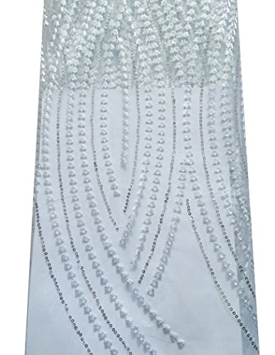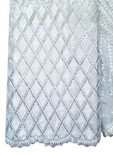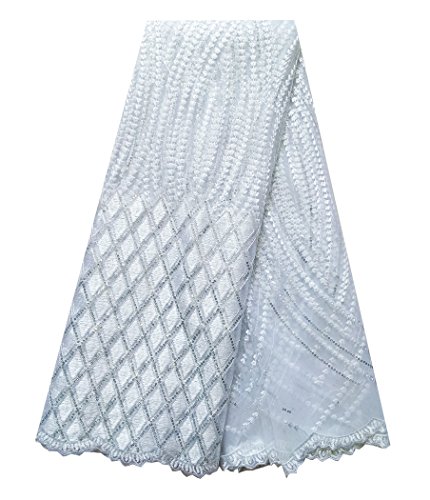 SanVera17 African Lace Net Fabrics Nigerian French Fabric Embroidered and Beading Guipure Cord Lace for Party Wedding 5 Yards us-fabric-076 (white)