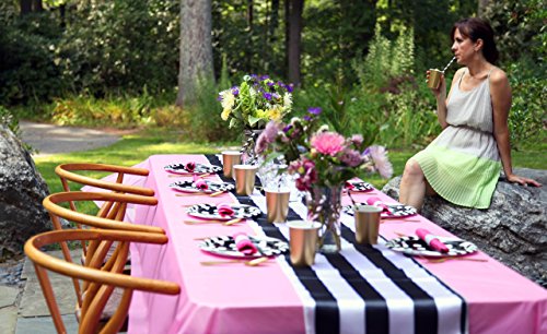 .CHIC TABLE DECOR - This stylish combination is a must have for your party planning needs, whether you are hosting a wedding, birthday, baby shower, gender reveal, bachelorette party, or girls night in. This kit can add the right classic touch to your party theme. Includes 1 black and white striped table runner and 1 pink tablecloth