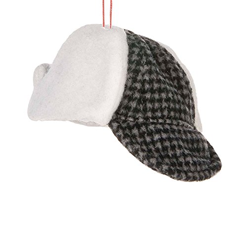 Grey Black Houndstooth Hunter's Hat 4.5 x 2 Inch Polyester Christmas Ornament