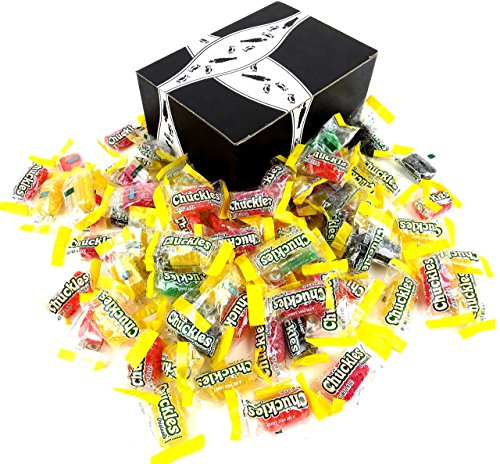 -. Binding : Misc. -. Brand : Black Tie Mercantile -. EAN : 0651818998227 -. Feature : Includes one 2 lb bag of Chuckles Individually Wrapped Original Jelly Candy (Approximately 80 Pieces) / Fat Free / Kosher Services Kosher Pareve / Product of Mexico / In a BlackTie Box -. IsAdultProduct : 0 -. Label : Black Tie Mercantile -. Manufacturer : Black Tie Mercantile -. PackageQuantity : 1 -. ProductGroup : Grocery -. ProductTypeName : GROCERY -. Publisher : Black Tie Mercantile -. Studio : Black Tie Mercantile -. Title : Chuckles Original Jelly Candy, 2 lb Bag in a BlackTie Box -. UPC : 651818998227