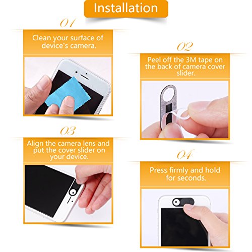 -. Feature : P.R.IVACY PROTECTOR---Use the simple and effective gadget to get maximun P.R.Ivacy and security protection.Cover your webcam when not in use,and prevent web hackers from spying on you. / SLIDER DESIGN---The camera cover can be opened or closed with one finger movement,without the need for complex operating procedures. / SLIM SIZE---Designed only 0.05in thin,ensure your device can be closed completely with no harming.Made of high quality ABS material,fashional and compact,installation without any pressure. / EASY TO INSTALL---Just need to peel off the 3M tape on the back webcam cover slider, and align the camera lens and put the cover slider on your device.The camera cover slider also can be easily removed without any residue leave. / FITS ON MOST DEVICES---Camera cover slider is suitable for most tablets,laptop,surface pro,iPad,macbook,iphone and more devices.
